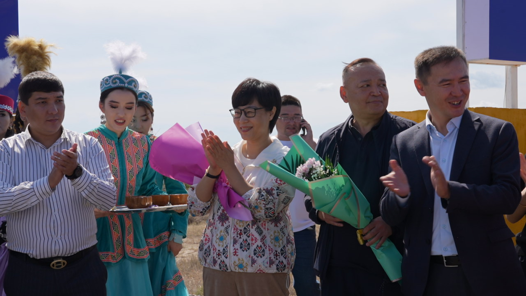 乌尔加尔县县长和当地工作者们一起参加了欢迎仪式。
